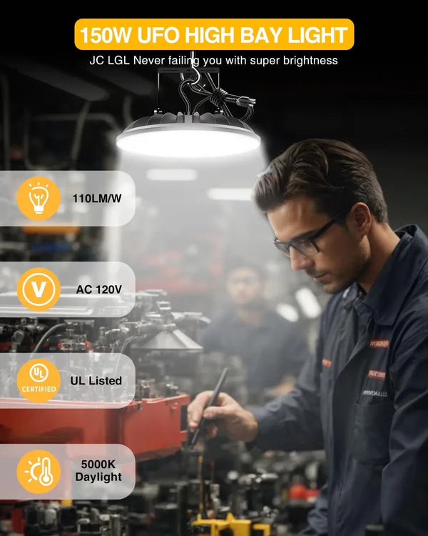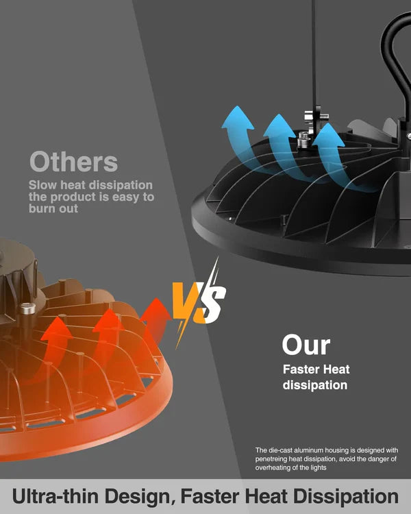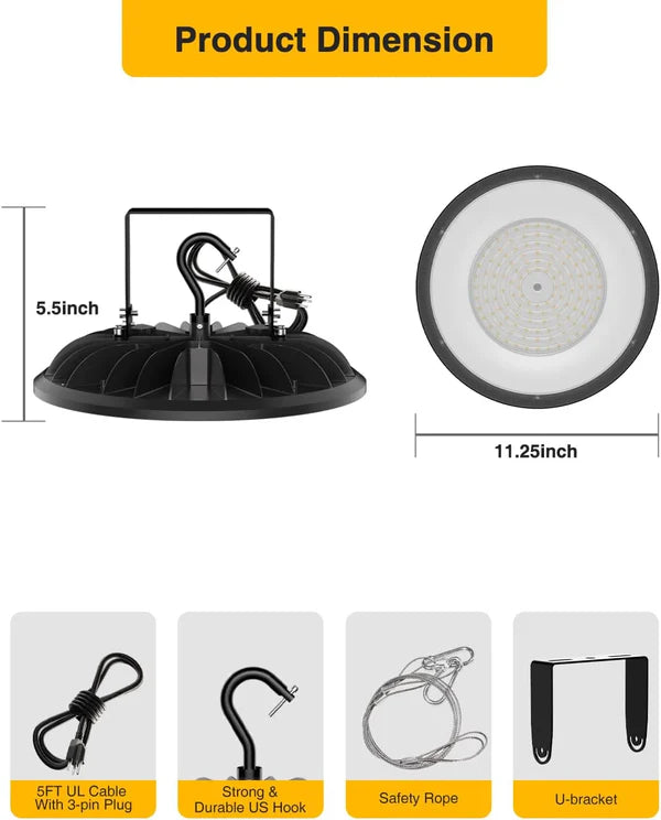 YXL LIGHTING High Bay LED Shop Lights by YXL LIGHTING delivers remarkable 16,500-24,000 lumens of output in 5000K daylight, which helps to provide more realistic colors for objects.These high bay LED lights are UL listed, more safe and reliable. It adopts an integrated design of die-cast aluminum housing with ultra-thin profile. The heat sink on the back has excellent thermal conductivity and ensures high performance for over 50,000 hours of continuous use.