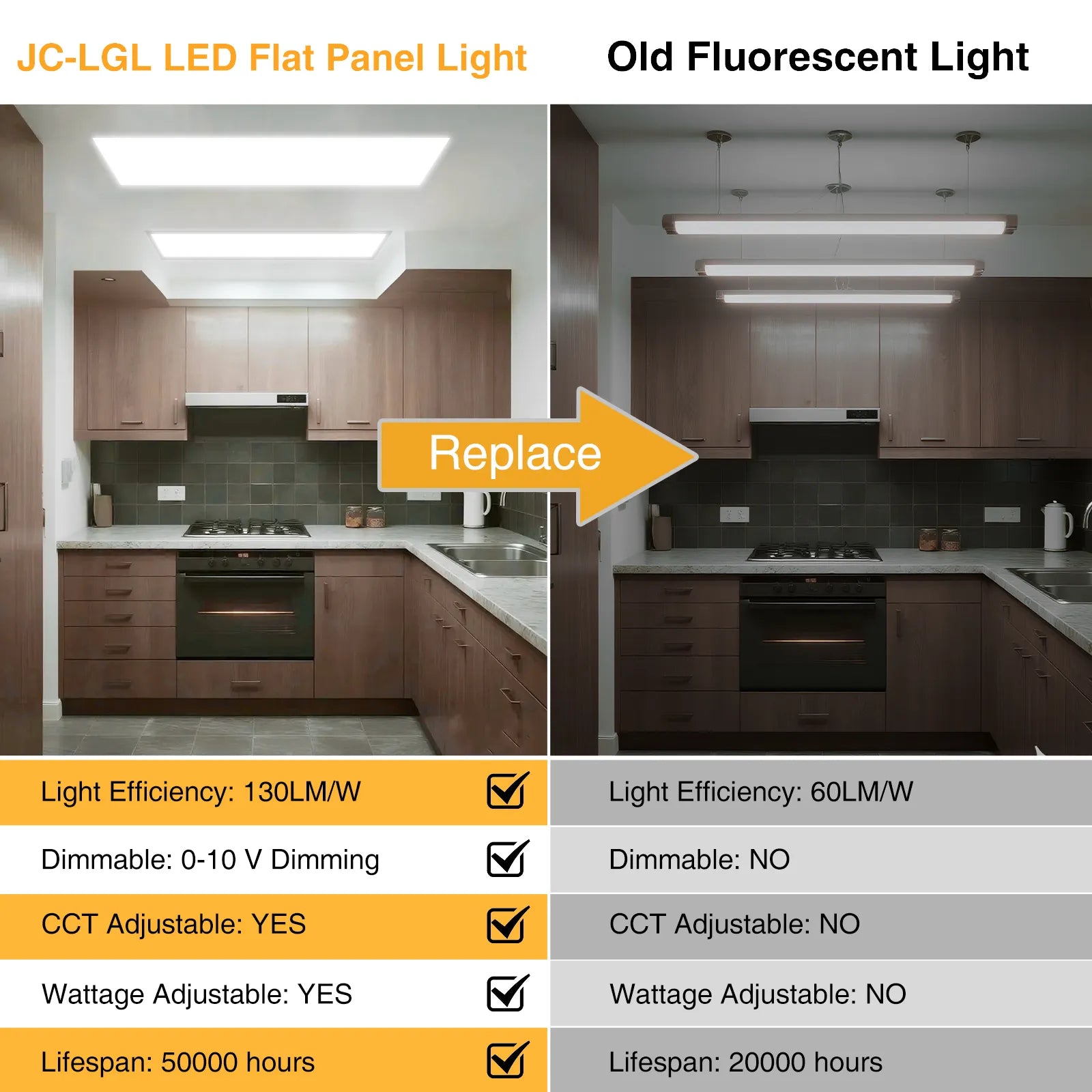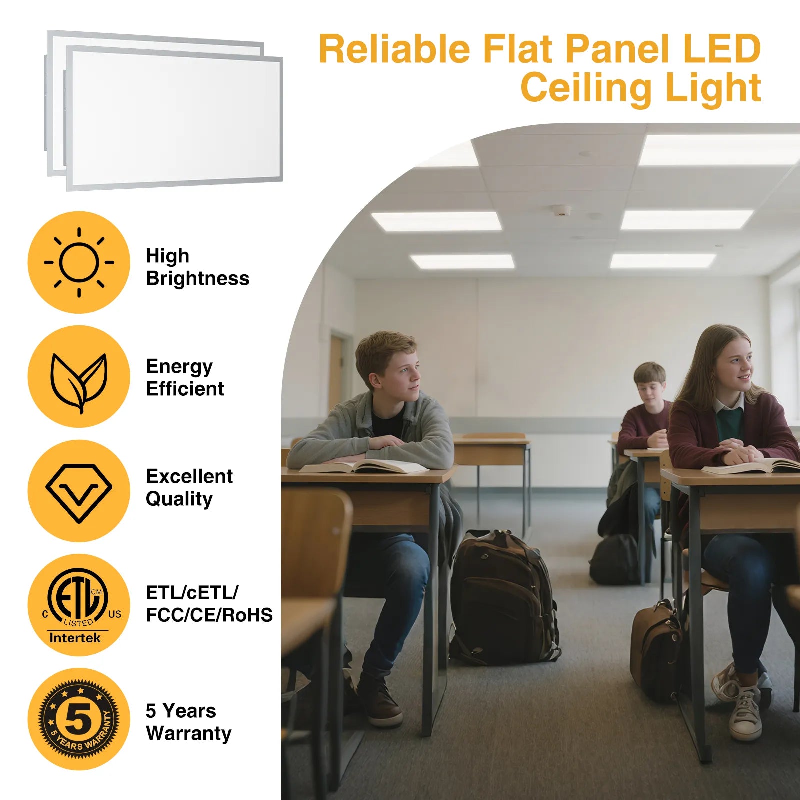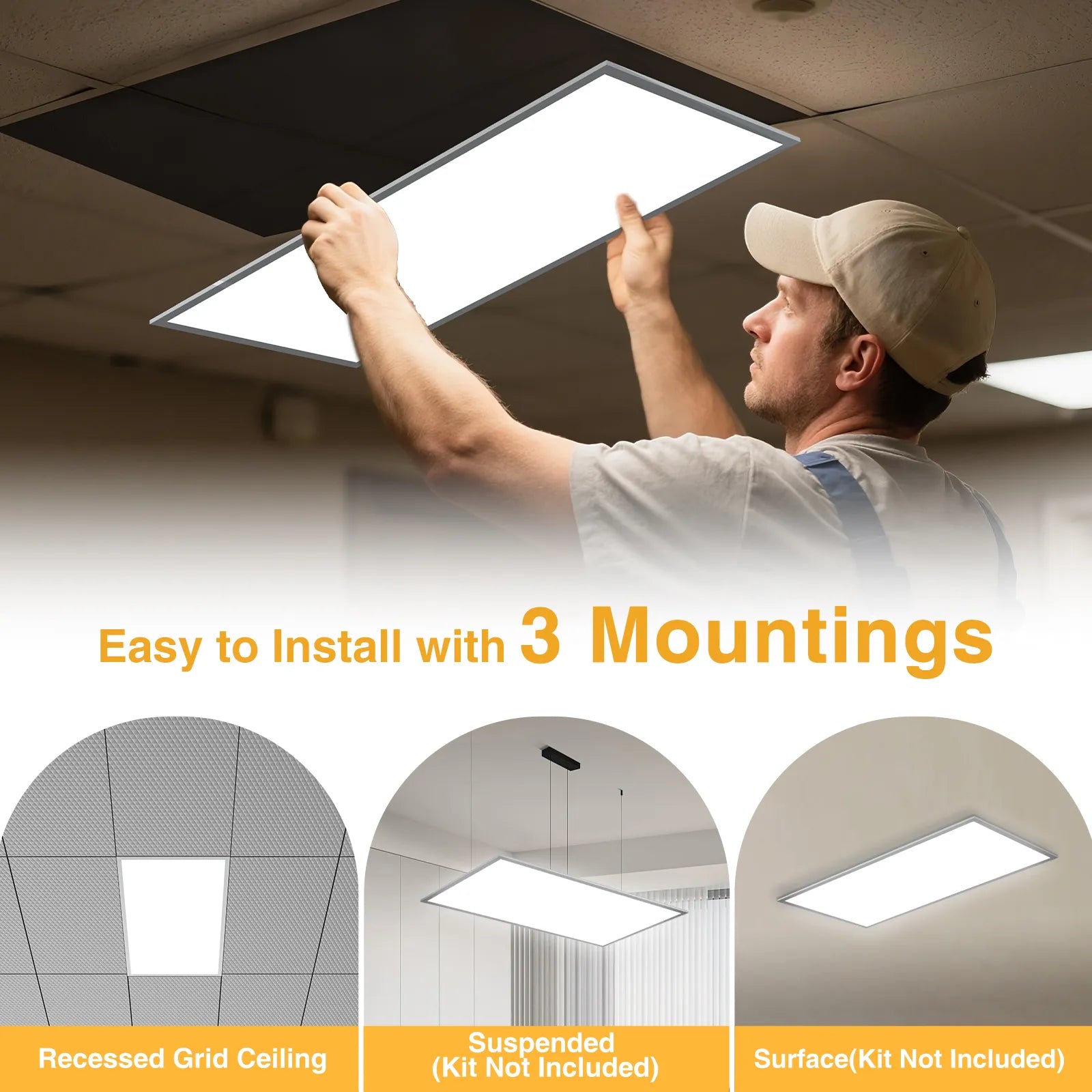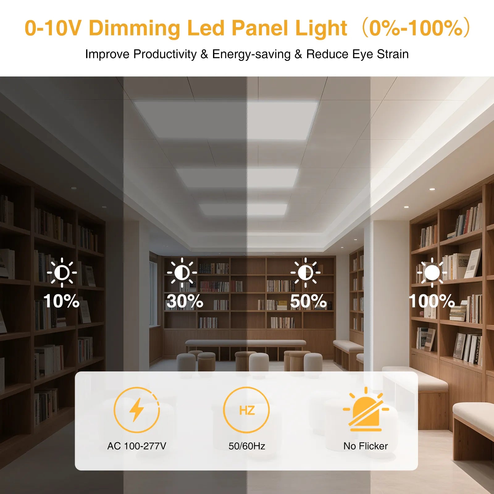 The YXL LED panel light boasts an impressive light efficiency of 130lm/W. This model features field-selectable CCT and wattage, along with 0-10V dimming capabilities ranging from 0% to 100%. Utilizing new backlit technology, it ensures optimal light dispersion and uniform surface brightness. The aluminum frame provides a lightweight yet strong design, while the one-piece shell acts as a heat sink to maximize the light engine's lifespan. Designed for standard T-grid drop ceilings, it also offers an optional emergency battery and multiple mounting options. It is ETL/cETL/FCC/CE/RoHS approved and comes with a 5-year warranty.