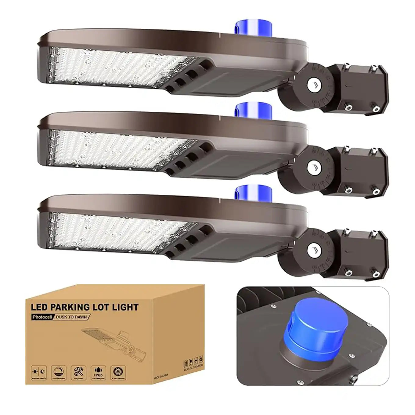 YXL LIGHTING LED Parking Lot lighting fixture includes a Dusk to Dawn photocell sensor and 0-10V dimming. It features a durable, aluminum alloy housing and is easily installed in parking lots, campuses, stadiums, or as a replacement for streetlights. ETL/FCC/RoHS are approval, as a testament to its exceptional quality, it comes with a generous 5-year warranty.