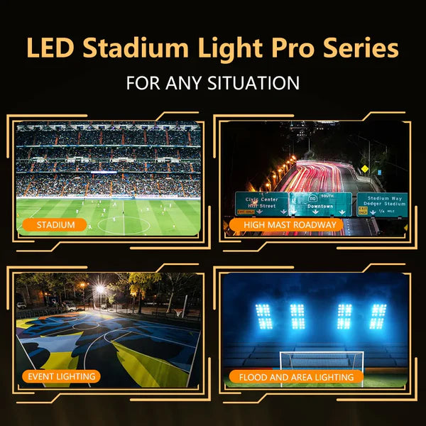 YXL LIGHTING Round stadium light features high-efficiency 5050 LED, achieving up to 150lm/w, and a high reliable driver in a separate box for optimal heat dissipation and easy maintenance. It offers various beam angles (4H*4V, 3H*3V) for uniform light distribution and includes a lamp cap to minimize glare. The power-treated surface provides enhanced protection against fading, rust, and sunlight. With three bracket options, IP66 rating, a wide operating temperature range (-35°C to 55°C), and certifications including UL/cUL/CE/RoHS, this light boasts a lifespan of over 50,000 hours and a 5-year warranty.