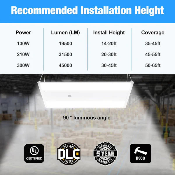 This light are made of rugged cold-rolled steel plate corrosion-resistant housing, and an excellent thermal management system effectively extends the service life of the fixture. Ultra-Compact, strudy design saves freight and space on lifts and racks during instllation, making it ideal for warehousing, large indoor spaces, retail and commercial applications.